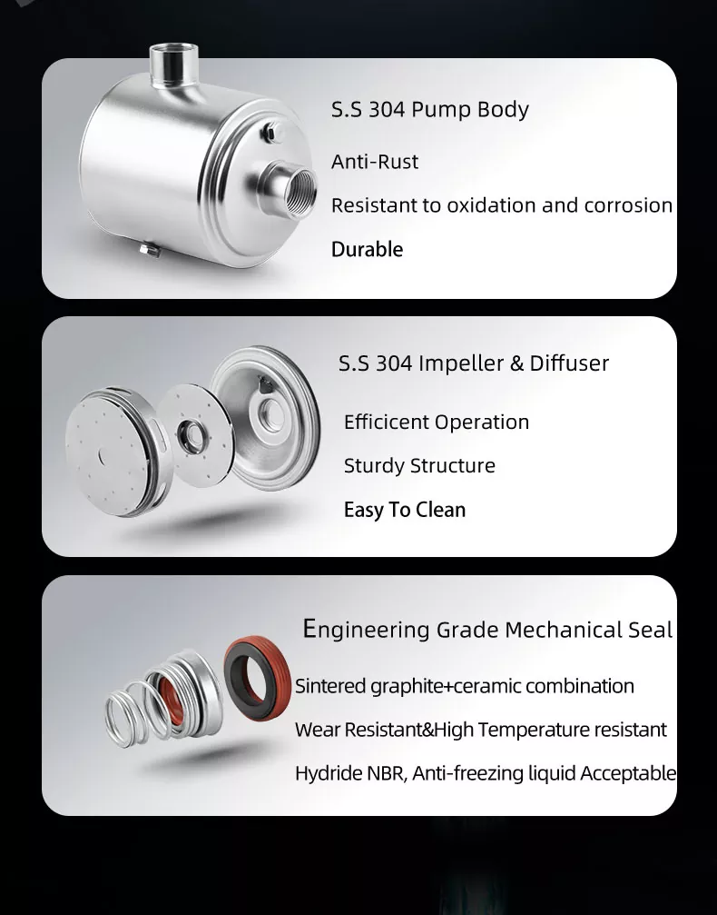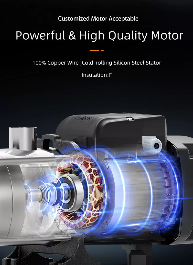Her aşama genel basınç çıkışına katkıda bulunurken, ihtiyacınız olduğunda sabit ve güçlü bir su akışının tadını çıkarabilirsiniz. Bahçenizi sulamaktan aynı anda birden fazla duş çalıştırmaya kadar, bu pompa güvenilir ve tutarlı bir performans sunar.